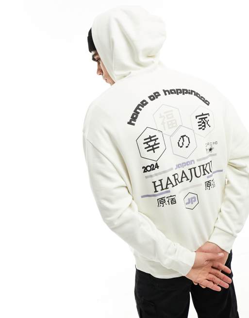Sudadera blanco hueso extragrande con capucha y estampado en relieve de ASOS DESIGN
