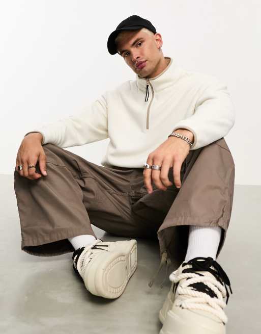 Sudadera blanco hueso extragrande con media cremallera de forro polar de ASOS DESIGN