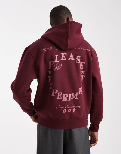 Sudadera burdeos con capucha, estampado en la espalda y costuras a contraste de ASOS DESIGN