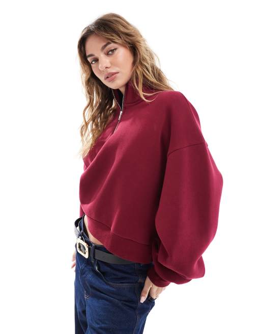 Sudadera burdeos con media cremallera de ASOS DESIGN