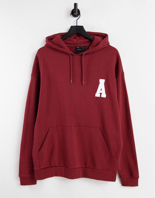 Sudadera burdeos extragrande con capucha y estampado de logo universitario de ASOS Actual