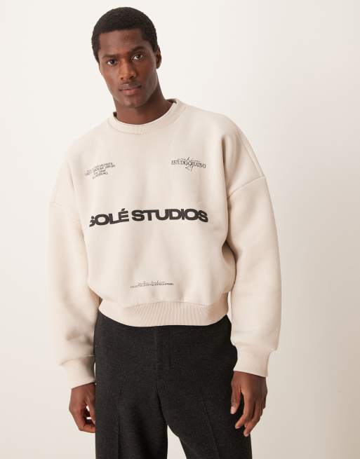 Sudadera corta beis extragrande con estampado en el pecho y sisas caídas de ASOS DESIGN