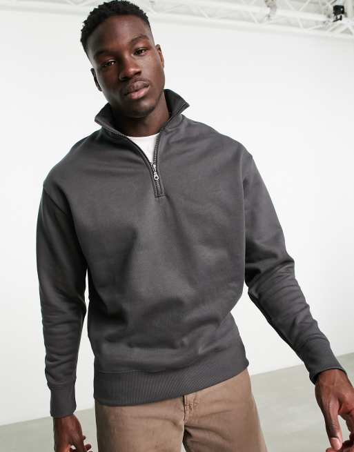 Sudadera extragrande con cremallera y lavado negro de tejido grueso de ASOS DESIGN