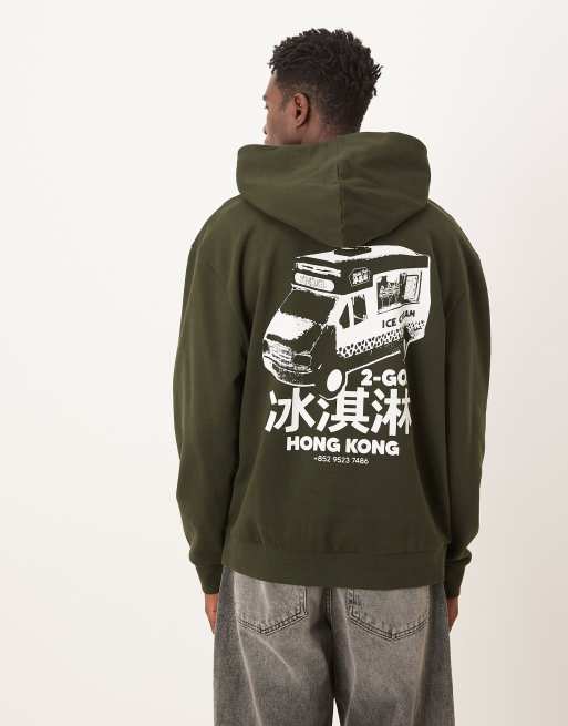 Sudadera gris carbón con capucha y estampado de camionera estilo sukajan de ASOS DESIGN