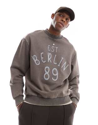 Sudadera gris carbón con lavado ácido y aplicación estampada de ASOS DESIGN