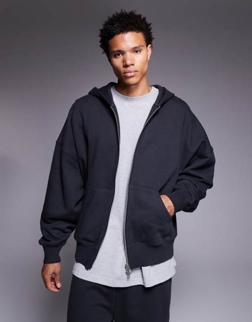 Sudadera gris carbón extragrande con capucha y cremallera de tejido de 400 g/m² premium de ASOS DESIGN