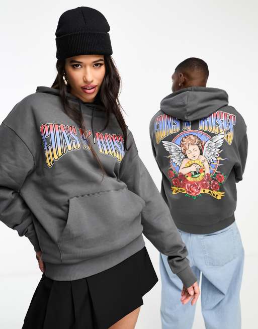 Sudadera gris carbón extragrande unisex con capucha y estampado con licencia de "Guns N' Roses" de ASOS DESIGN