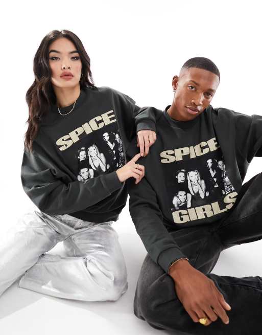 Sudadera gris carbón unisex extragrande con estampado gráfico con licencia de Spice Girls ASOS DESIGN