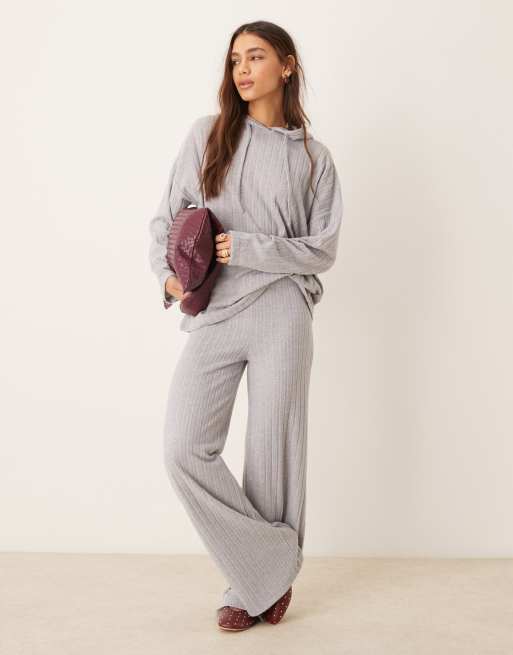 Sudadera gris de corte alargado extragrande con capucha de canalé ancho muy suave de ASOS DESIGN (parte de un conjunto)