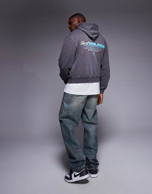 Sudadera gris de corte cuadrado con capucha, lavado ácido y detalle estampado de ASOS DESIGN