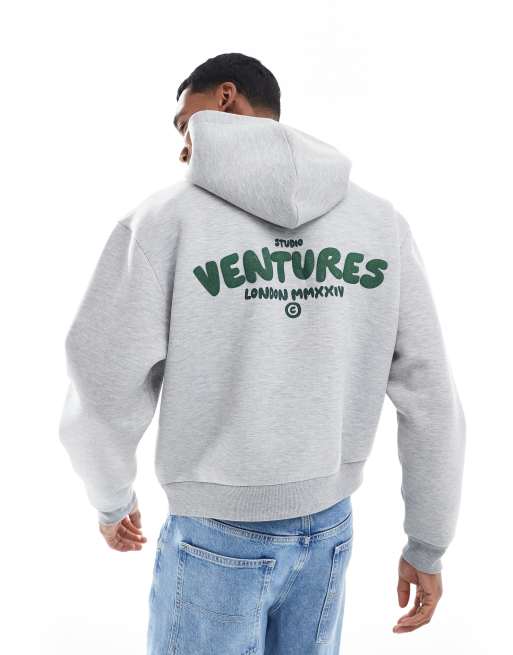 Sudadera gris de corte cuadrado extragrande con capucha y estampado gráfico de texto de tejido efecto neopreno de ASOS DESIGN