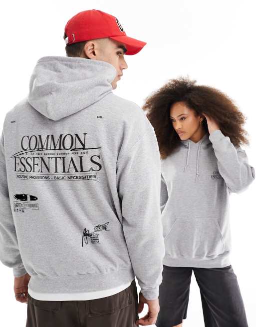 Sudadera gris extragrande con capucha y estampados de texto de ASOS DESIGN