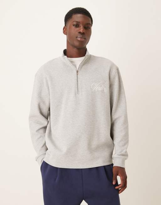 Sudadera gris extragrande con media cremallera y bordado en el pecho de ASOS DESIGN (parte de un conjunto)