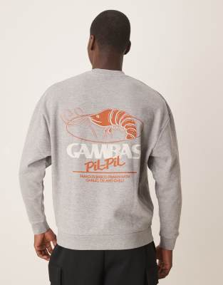 Sudadera gris jaspeado con estampado de gamba de ASOS DESIGN