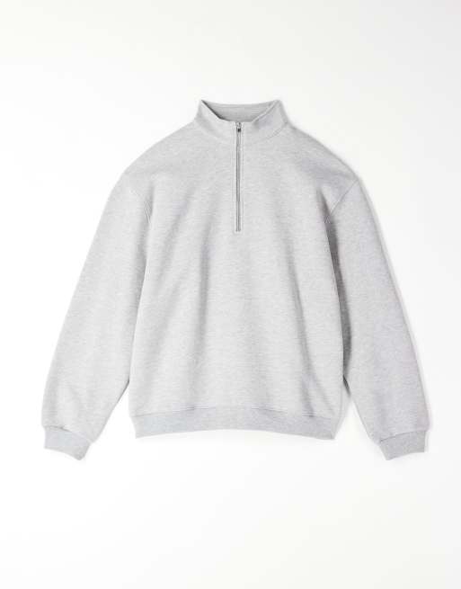 Sudadera gris jaspeado con media cremallera de tejido grueso de 400 g/m² premium de ASOS DESIGN