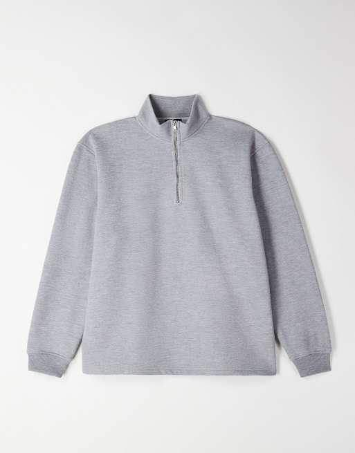 Sudadera gris jaspeado holgada con cremallera corta de piqué de ASOS DESIGN