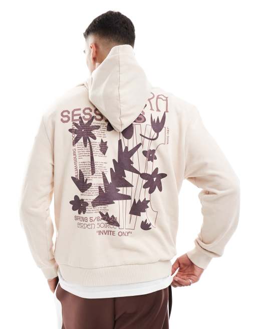 Sudadera gris lavado extragrande con capucha y estampado floral de ASOS DESIGN
