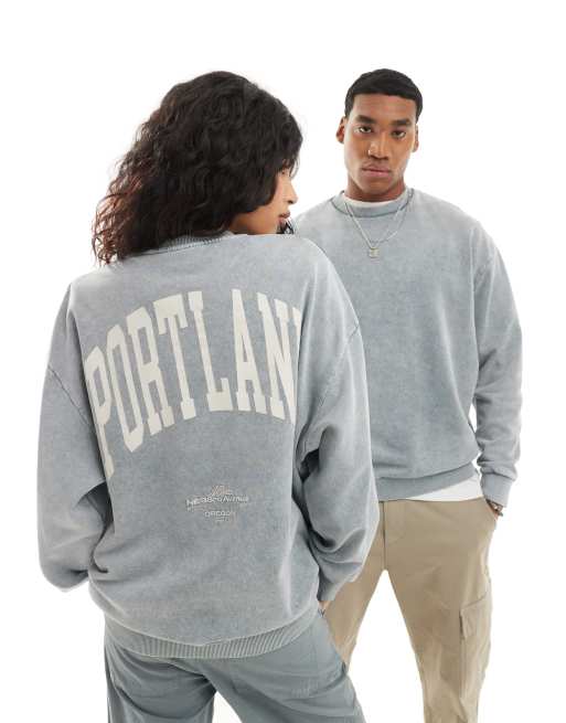 Sudadera gris lavado unisex extragrande con bordado y estampado de ciudad de ASOS DESIGN