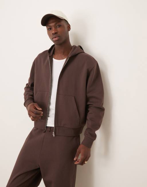 Sudadera marrón básica de corte cuadrado holgado con capucha y cremallera Essentials de ASOS DESIGN