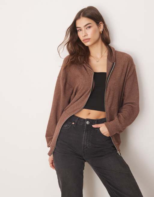 Sudadera marrón chocolate jaspeado con capucha y cremallera de tejido muy suave de ASOS DESIGN (parte de un conjunto)
