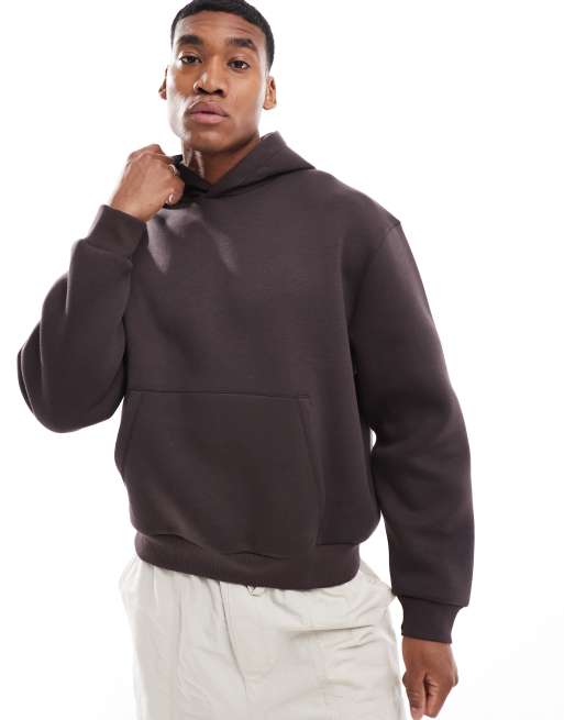 Sudadera marrón de corte cuadrado extragrande con capucha de tejido grueso efecto neopreno de ASOS DESIGN