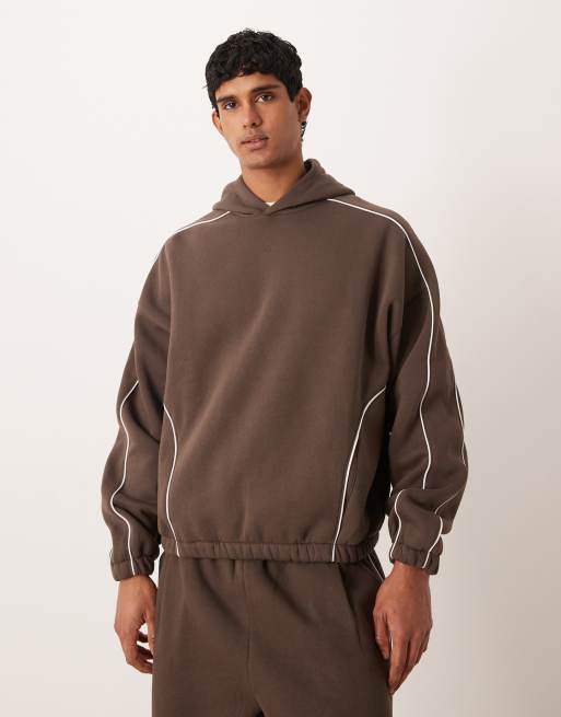 Sudadera marrón de corte cuadrado ultragrande con capucha y ribetes de ASOS DESIGN (parte de un conjunto)