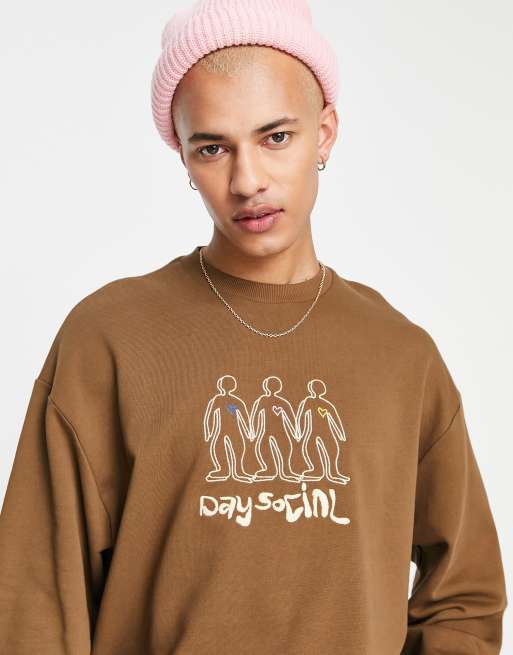 Sudadera marrón extragrande con bordado 3D de ASOS Daysocial