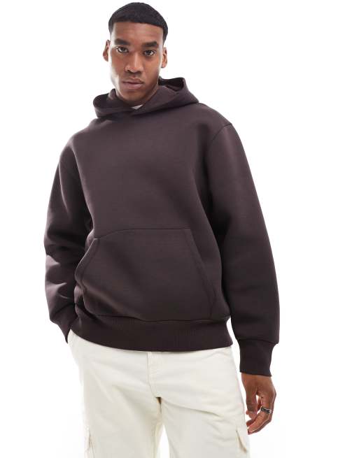 Sudadera marrón extragrande con capucha de tejido grueso efecto neopreno de ASOS DESIGN