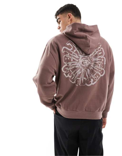 Sudadera marrón extragrande con capucha y estampado de ojo de ASOS DESIGN