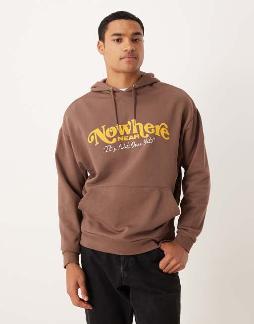 Sudadera marrón holgada con capucha y estampado de ASOS DESIGN
