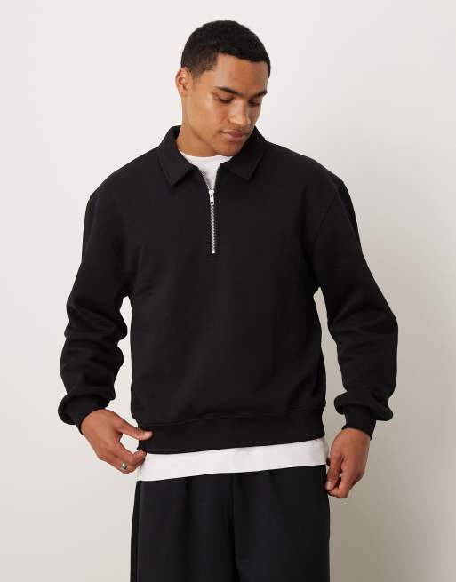 Sudadera negra básica de corte cuadrado holgado con solapas y cremallera corta Essentials de ASOS DESIGN