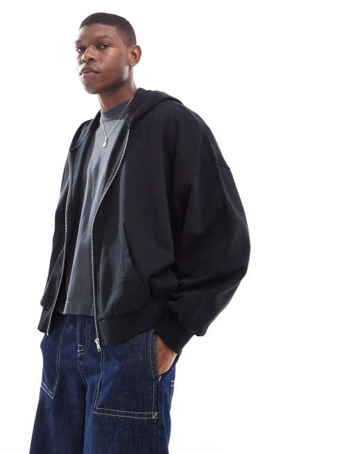 Sudadera negra básica de corte cuadrado ultragrande con capucha y cremallera de ASOS DESIGN