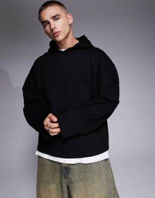 Sudadera negra con capucha y bajo rematado de ASOS DESIGN