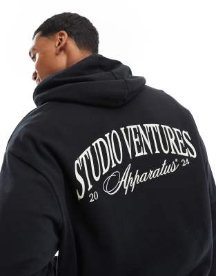 Sudadera negra con capucha y estampado en la espalda de ASOS DESIGN