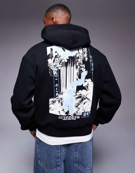Sudadera negra de corte cuadrado extragrande con capucha y estampado trasero de ASOS DESIGN