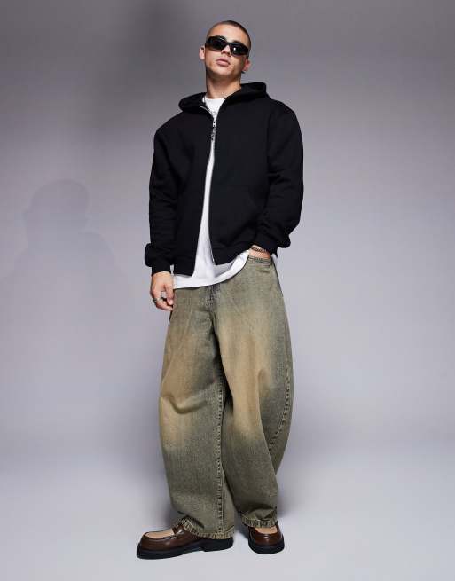 Sudadera negra extragrande con capucha y cremallera de tejido grueso de 400 g/m² premium de ASOS DESIGN