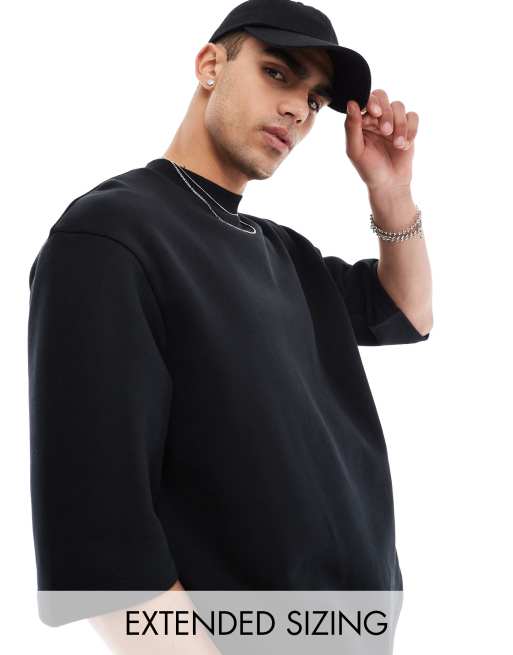 Sudadera negra extragrande de manga corta con bajo sobrehilado de tejido grueso de ASOS DESIGN