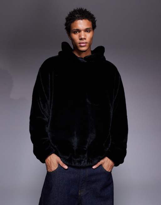 Sudadera negra holgada con capucha y bolsillos con abertura lateral de piel sintética de ASOS DESIGN
