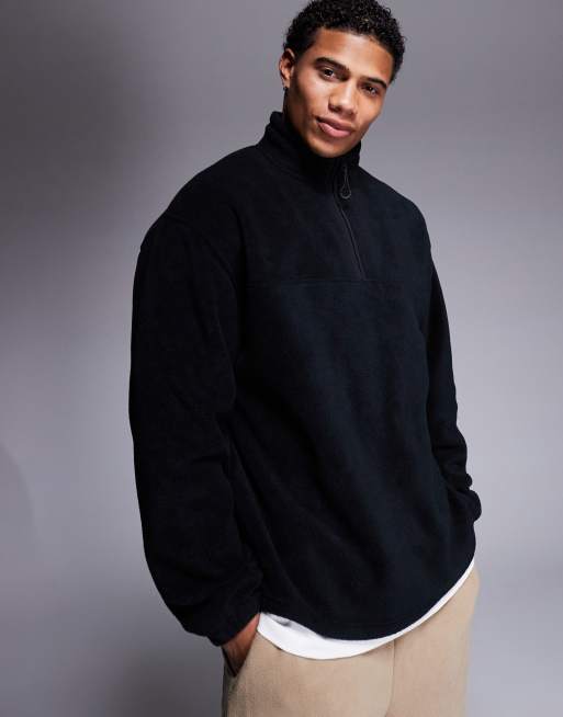Sudadera negra holgada con cremallera corta de felpa de ASOS DESIGN