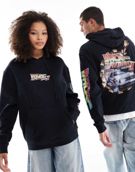 Sudadera negra unisex extragrande con capucha y estampado con licencia de "Back to the Future" de ASOS DESIGN