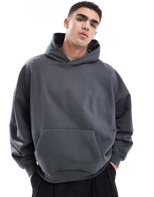 Sudadera negro lavado ultragrande con capucha de tejido grueso de 400 g/m2 premium de ASOS DESIGN