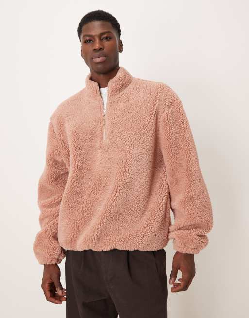Sudadera rosa holgada con media cremallera de borreguito de ASOS DESIGN