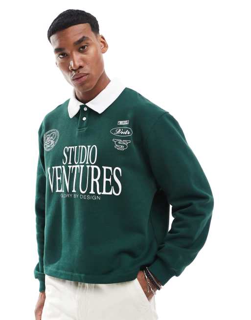 Sudadera verde extragrande estilo polo de rugby con estampado de ASOS DESIGN