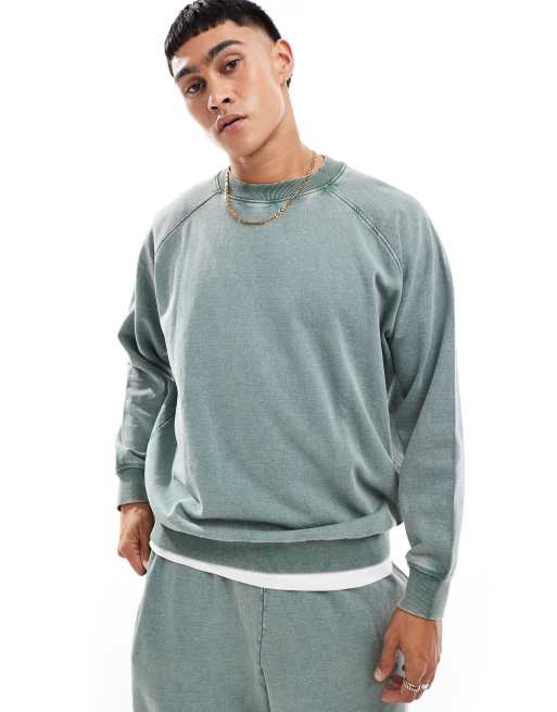 Sudadera verde lavado extragrande con mangas raglán de ASOS DESIGN (parte de un conjunto)