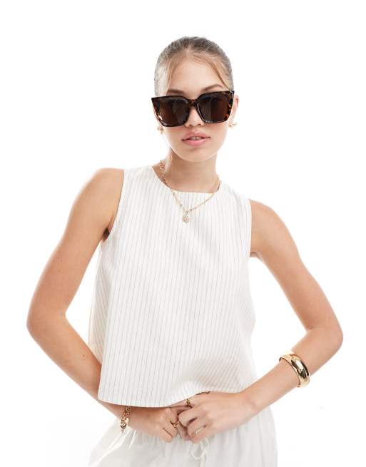 Top a rayas sin mangas con abertura en la espalda de tejido efecto lino de ASOS DESIGN