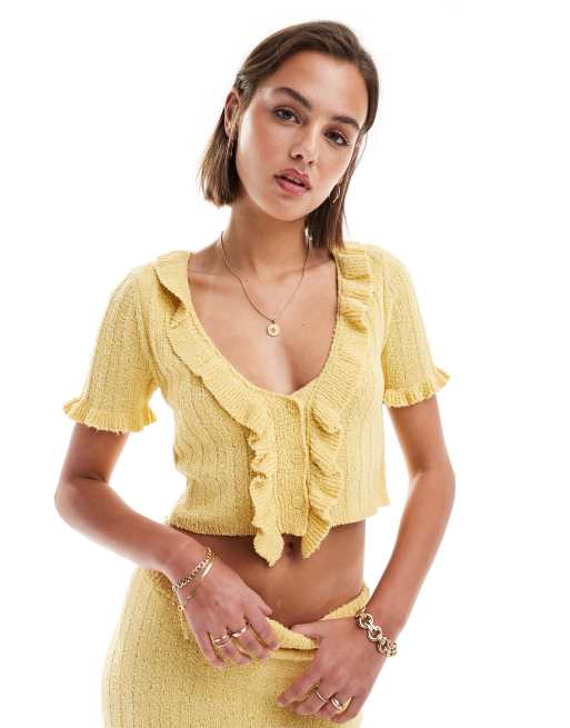 Top amarillo con volante de punto de ASOS DESIGN (parte de un conjunto)