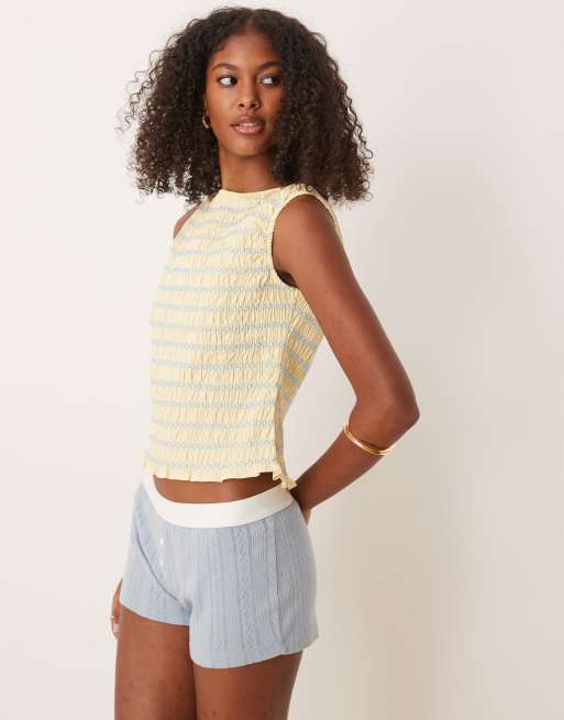 Top amarillo fruncido sin mangas con pespuntes en contraste de ASOS DESIGN