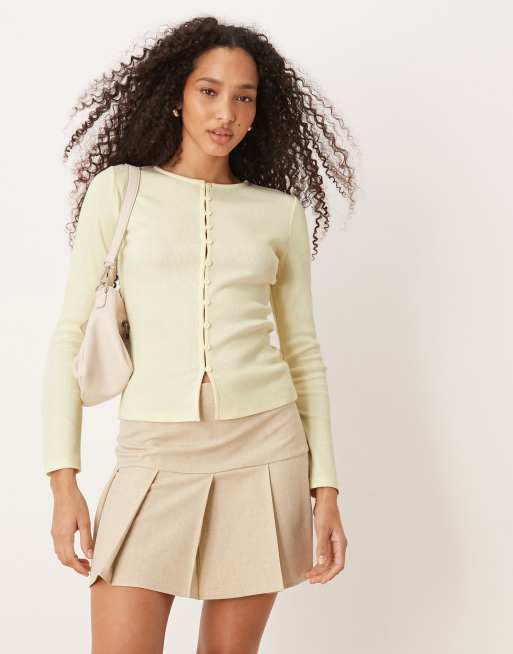 Top amarillo pastel abotonado de canalé compacto reducido de ASOS DESIGN