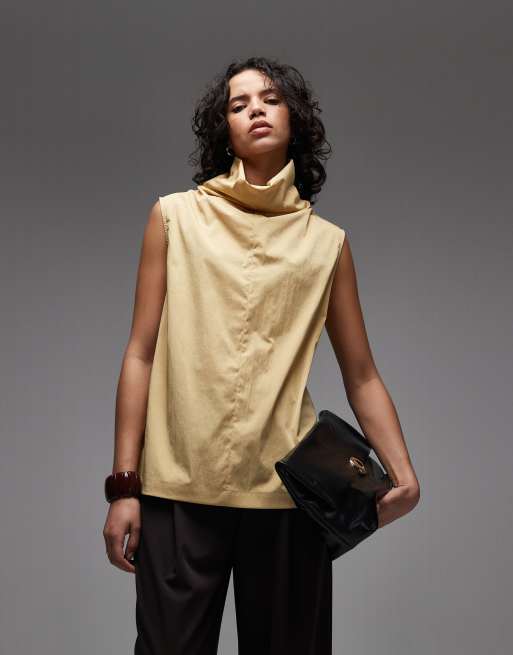 Top amarillo pastel sin mangas con cuello alzado icónico de ASOS DESIGN