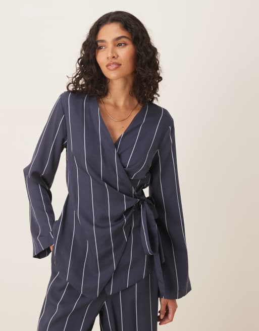 Top azul a rayas con parte delantera cruzada de ASOS DESIGN (parte de un conjunto)